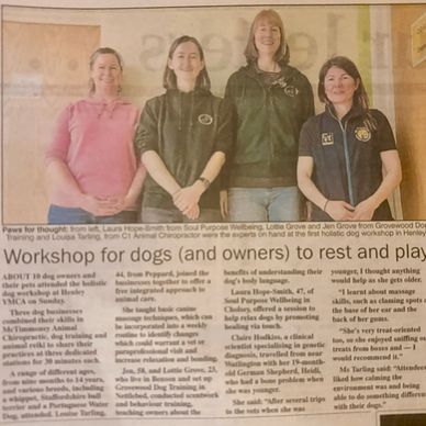 "Louisa has treated our middle aged English Cocker Spaniel. She performed gentle, chiropractic myofascial release and massage, which our dog really enjoyed. She was relaxed and loved seeing Louisa." Alice L. Sonning Common